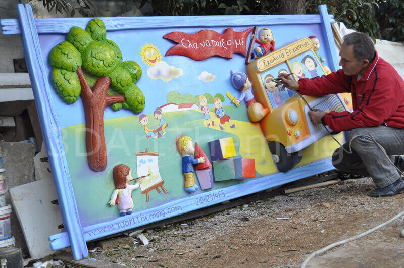 - Τρισδιάστατες θεματικές διακόσμησης επαγγελματικών χώρων. Μελέτη, σχεδιασμό και κατασκευή περιπτέρων εσωτερικών σε καταστήματα, περιπτερά εκθεσεών.